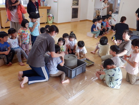 今日は「石臼体験」でした。きな粉づくりをみんなで楽しみましたよ!3種類のきな粉が出来ましたよ。一番人気は「黒豆」のきな粉でした!今日の写真は···